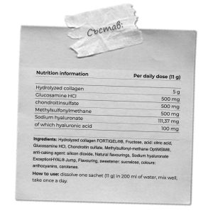 Хранителна добавка с FORTIGEL® колагенови пептиди тип II, глюкозамин, хондроитин, MSM и хиалуронова киселина за поддържане на ставите и хрущяла.