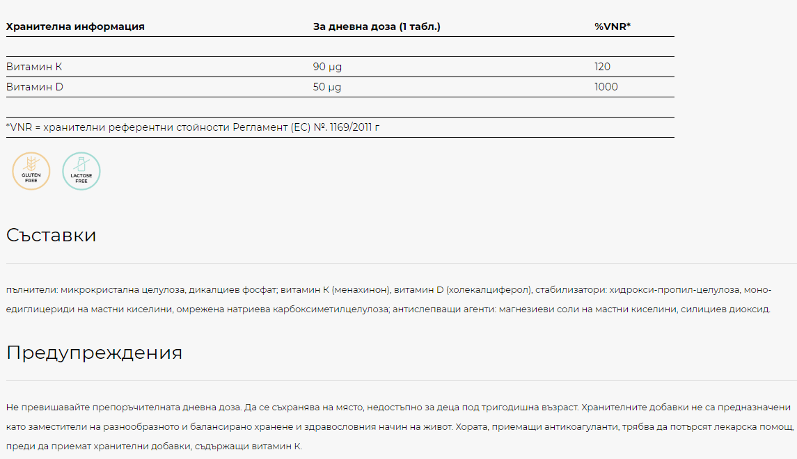 💊 Подходящ за хора с ниско излагане на слънце, спортисти, възрастни, хора със заседнал начин на живот или при повишени нужди от витамин D и K.